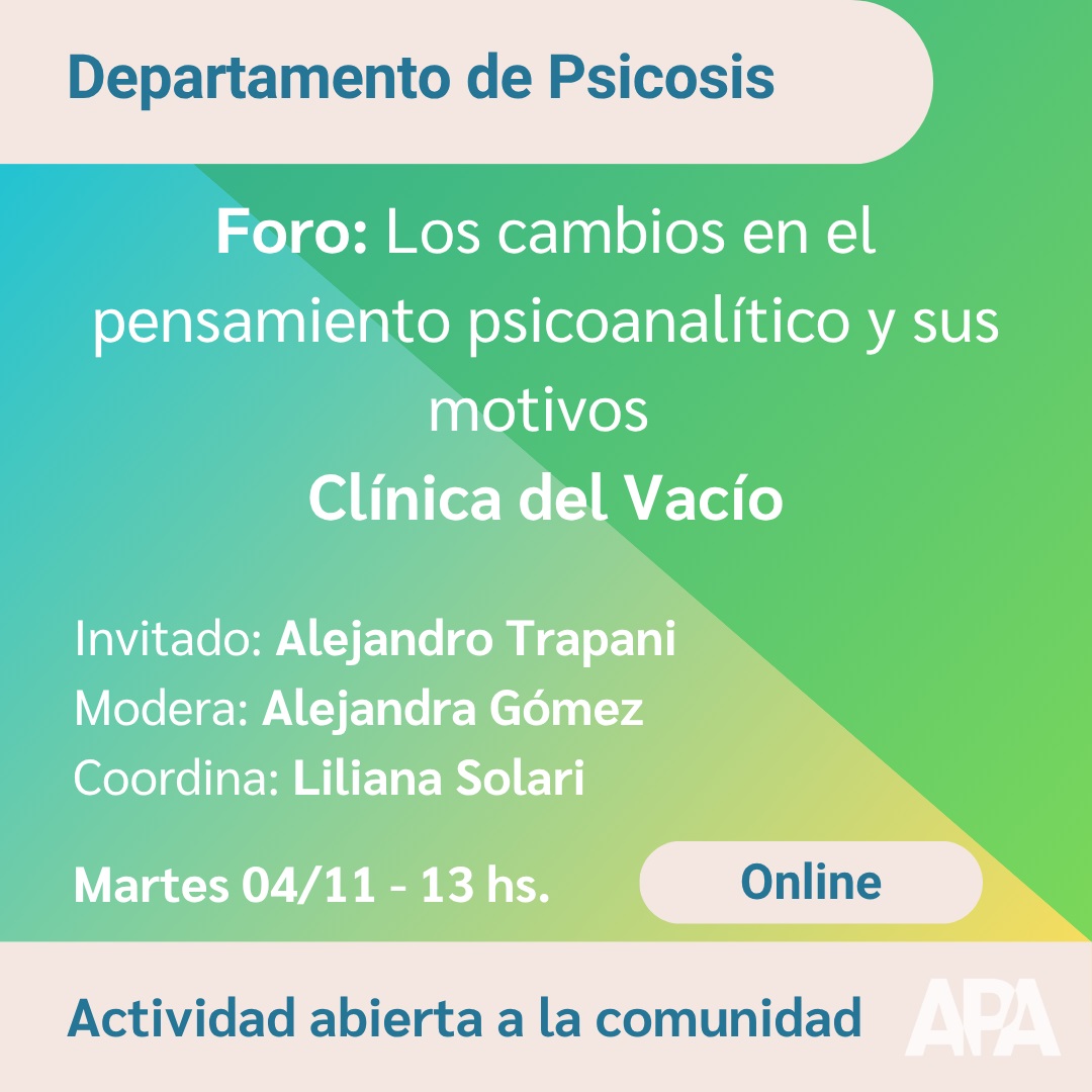 Foro: Los cambios en el pensamiento psicoanalítico y sus motivos. Clínica del Vacío