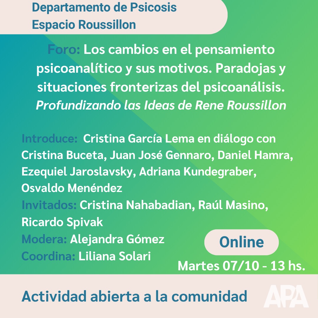 Foro: Los cambios en el pensamiento psicoanalítico y sus motivos. Paradojas y situaciones fronterizas del psicoanálisis.