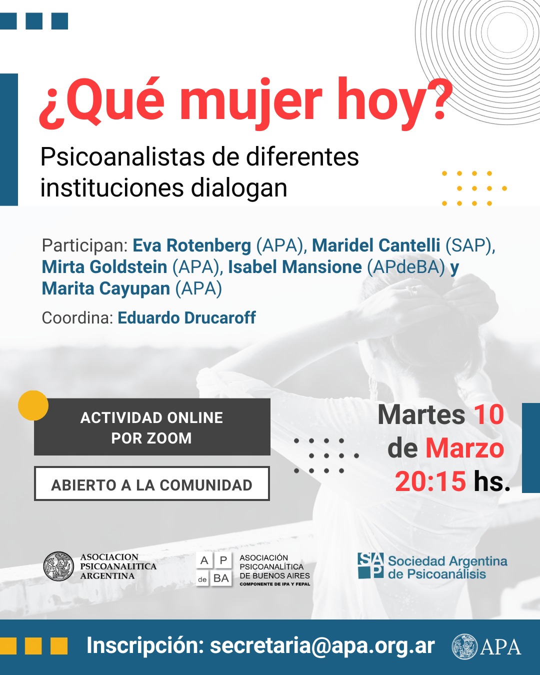 - Participan: Eva Rotenberg (APA), Maridel Cantelli (SAP), Mirta Goldstein (APA), Isabel Mansione