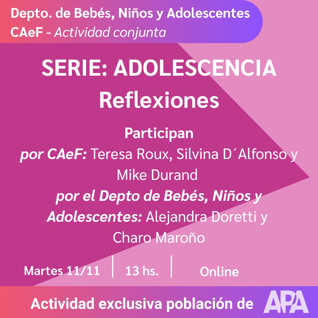 - Participan: por CAeF: Teresa Roux, Silvina D´Alfonso y Mike Durand / por el Departamento de Bebés, Niños y Adolescentes: Alejandra Doretti y Charo Maroño
