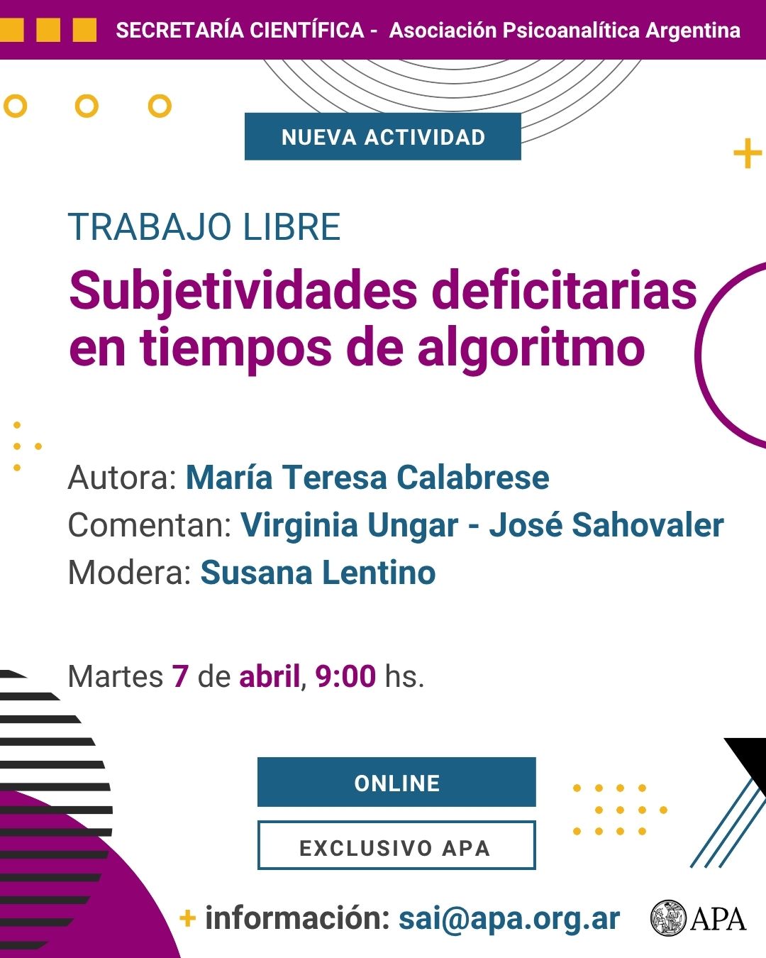 Integrantes: Lic. Rafael Marucco, Lic. Nicolás Giró, Lic. Claudia Tapia, Dr. Alejandro Apter.